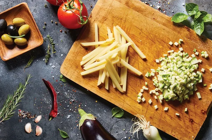 With the slice insert, you can cut slices in 4 different thicknesses. By simply pressing the button on the side of the slicer, you can change the inserts. The blade inserts allow you to cut fine cubes and strips to different thicknesses. This cutting setting is perfect for dicing onions or preparing vegetables.